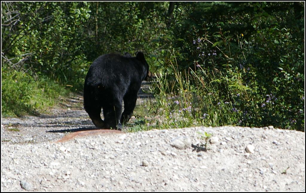 Not my bear. Too dark for photo. But this is about what I saw of it as it bounded down into the creek bed.
