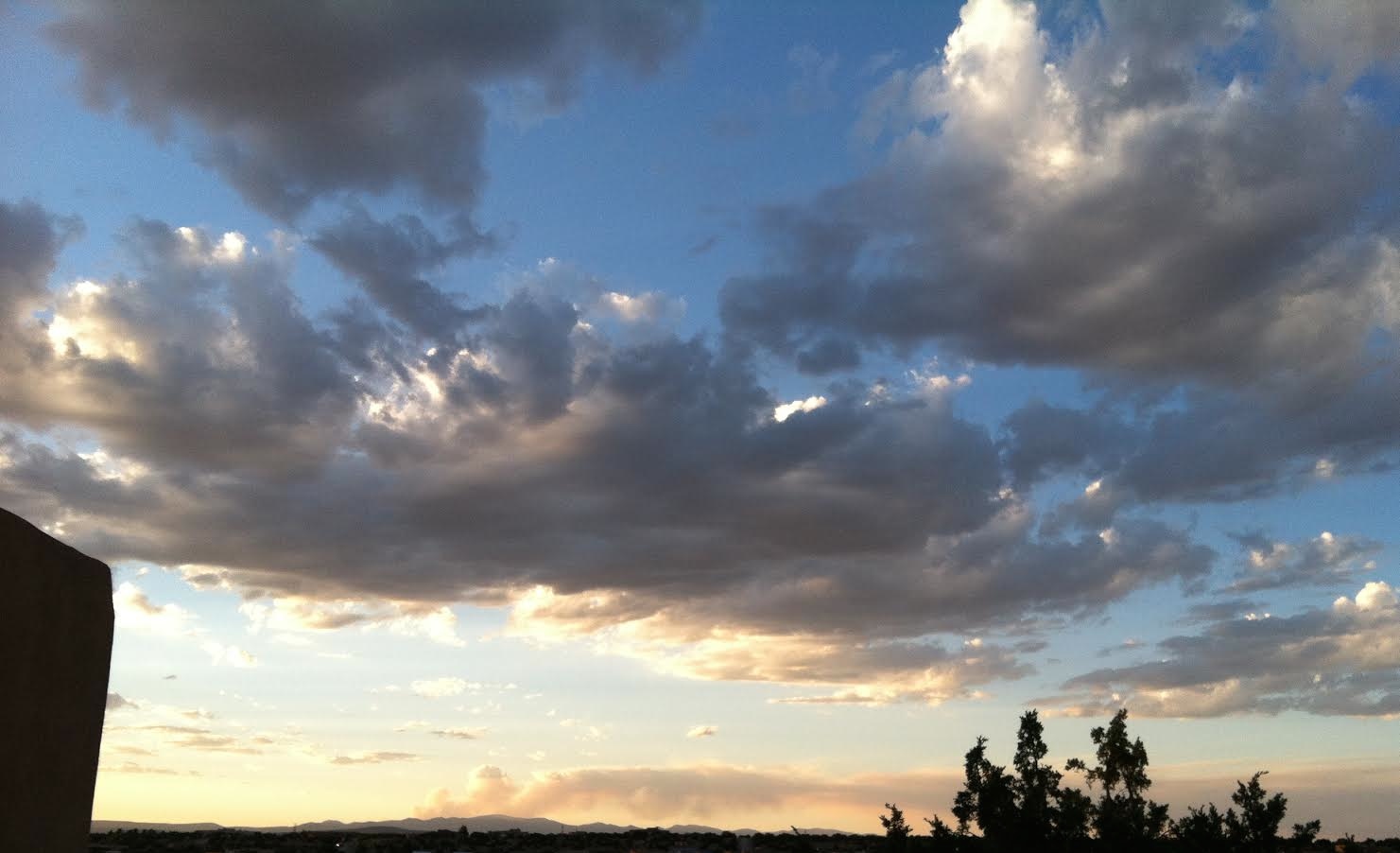 — Smoke plume in the Jemez visible from here Sunday afternoon. Fire folks says it’s a week-old, lightning-caused fire that grew to 200-300 acres today 13 miles east of Cuba in the Santa Fe National Forest. By evening, fat columns of smoke leveling out and flowing to the northeast. Looks like fire is lying down, or knocked down, or both, for the night.