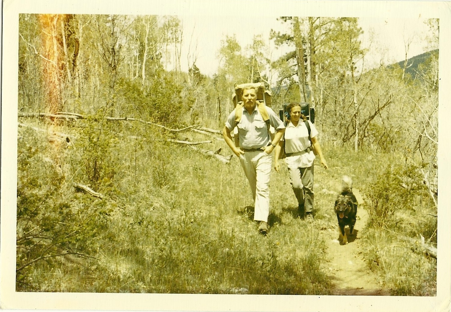 Happy birthday, Dad. You would have been 86 today. Scanned this happy photograph of you and Pat and Mus walking down what I suspect is the Rito Valdez on the east side of Hamilton Mesa in 1970. As far as I know, you seldom were happier than when walking around the Pecos. And surely you loved Pat and Mus. By the way, you and Pat are near here, together in that favorite place, as promised. Phelps and Andrew and I made sure. John