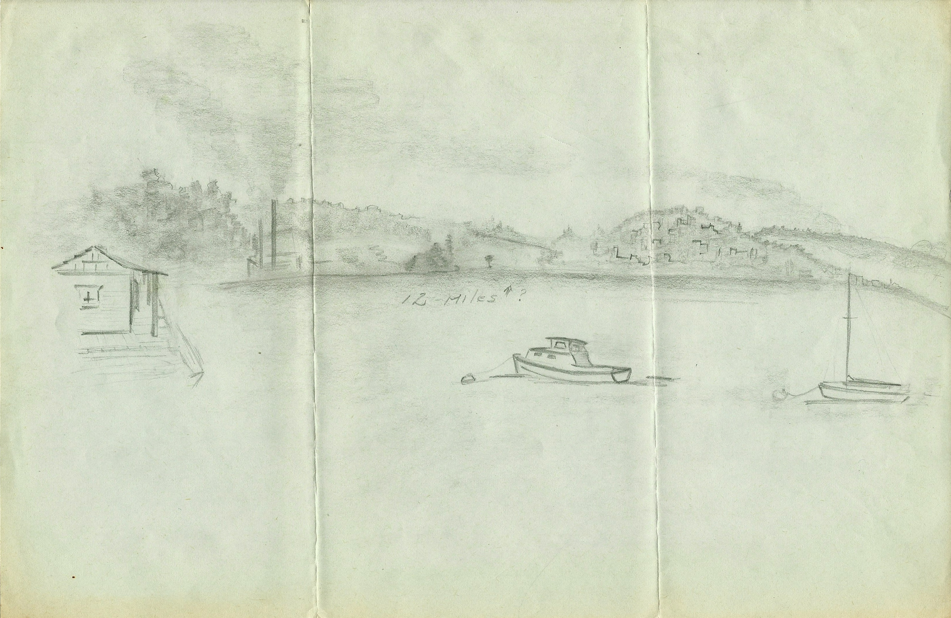 My mother’s pencil sketch of her cottage and the bay at Hadlock, Washington, leaves me thinking about the uncertainty of human distance, how far we will travel.