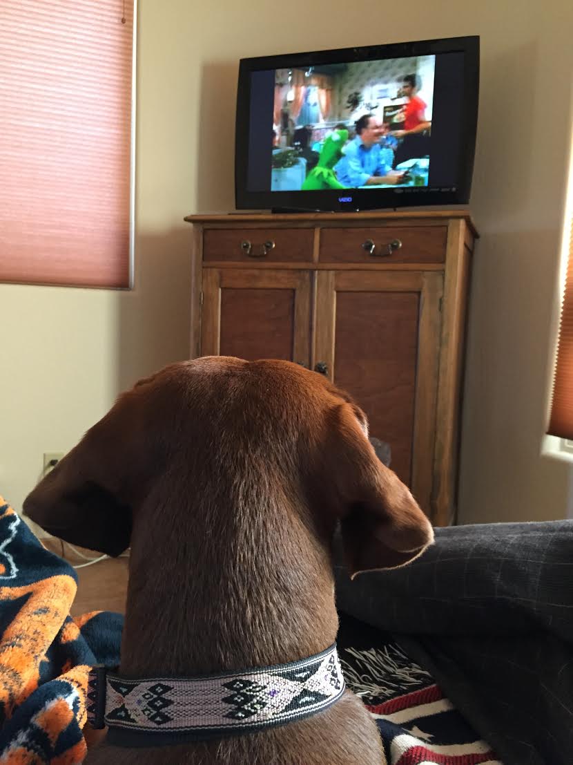 Lori and Mike’s rescue girl Sara, watching the Muppets earlier this week. She’s come a long way from being a lost or dumped pup on the West Mesa and clearly likes the comforts of her Placitas home. She reportedly also likes watching Animal Planet and the Westminster dog show. My guy Cooper isn’t a TV fan, but Sara is still his best pal.