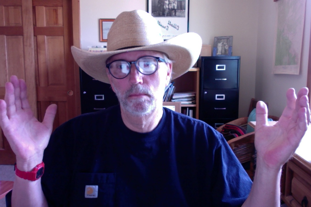I acknowledge I am partial to Larry Mahan and George Strait, and I notice upon taking a selfie that my Carhartt shirt has a label over the breast pocket, but I otherwise prefer to indulge in my own sense of style.