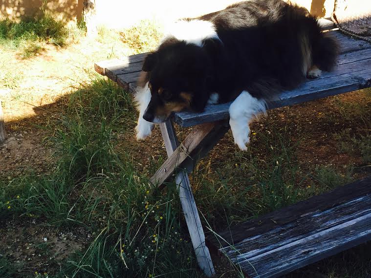 Cooper came home with me from the animal shelter on August 16, 2006. The shelter people guessed he was 3; the vet said anywhere from 3 to 8. At any rate, we celebrate his birthday on August 16. He’s waiting for breakfast on Sunday morning here. In summer, he regularly takes the breeze on top of the picnic table.