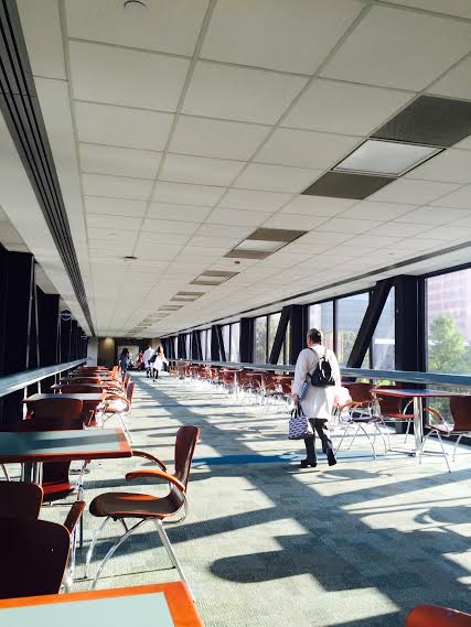 I drink orange juice at a table on the skybridge as hundreds of MD Anderson staff stream through in the morning to jobs in the “main building.” Many wear white coats and most look down at their phones as they walk. Thinking of the chewing gum saying, I think this probably is a good sign of medical dexterity, too.