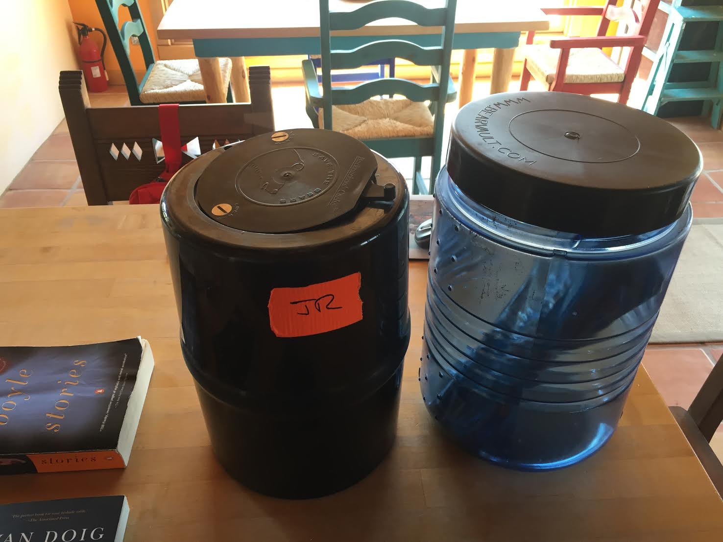 This reminded me that I own two bear-proof containers and always have had trouble opening them myself. I find the one on the right particularly troublesome and have relegated it to my kitchen as a mouse-proof container for packaged pasta, lid always ajar.