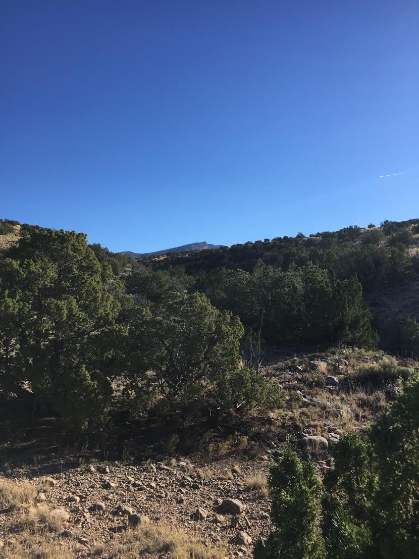 Cooper is not a distance guy, especially at his age. But mostly it’s that thick black coat and his herding dog’s attentiveness. And maybe, like me, a couple of extra pounds. Even on our walks, he likes to take breaks in the shade and take things in. If I want any real exercise these days, I have to go on my own, or with our friends Lori and Sara down the road. But I don’t mind being a slowpoke, either. I’ll take pictures while he shades up. And I think we both count our good fortune to be able to get here from our front door. I’ve been calling this a vacation month, taking it at home. October may be my favorite time in New Mexico. Stillness and softer light. But there isn’t much Coop likes better than snow, so we’re looking forward to another winter, too.