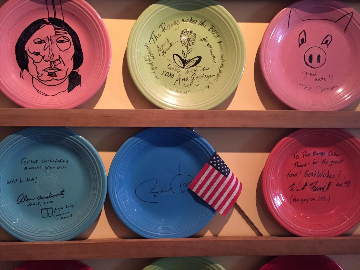 I noticed a lot of pumpkin cheesecake being served up at the Range Cafe in Bernalillo, although not on the plates signed by famous people. (Barack Obama, of course, was given a blue one to sign).