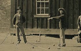 As for my continuing research on 19th Century New Mexico outlaws and lawn sports, you will recall that the last famous Kid photo is said to show Billy and the Regulators playing croquet in Lincoln County in 1878. This might not be surprising given that the gang had recently been employed by Englishman John Tunstall, a rancher and merchant who was the first of many to die that year as the result of Lincoln County commerce.