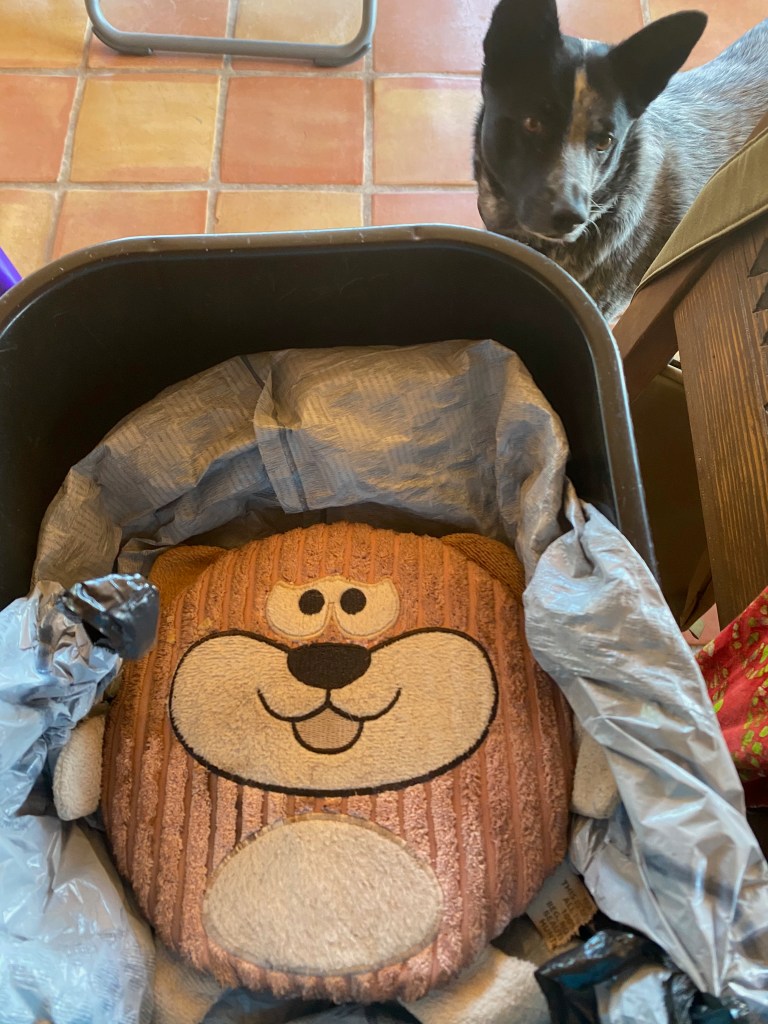 I’d long been reluctant to get rid of it. It was well-meaning present to Cowboy from our young friend Sophia, niece of neighbor Lori. I’m sure it was not demonically possessed when Sophia got it. It just turned out to be a too convenient partner for Cowboy in household pranks that were amusing only to him.