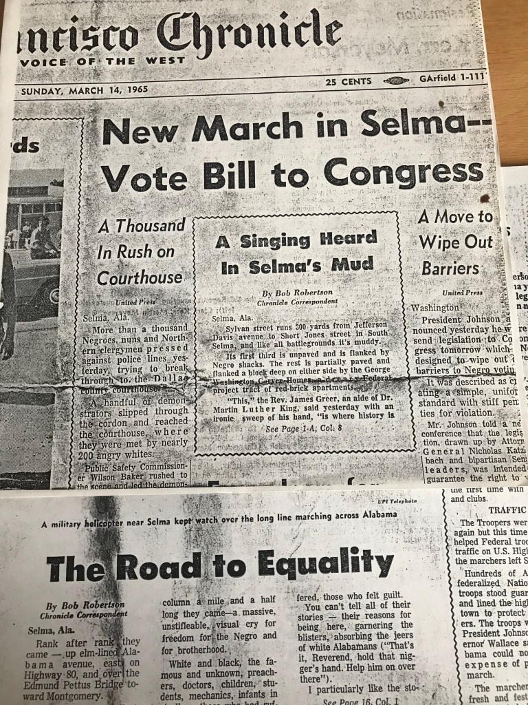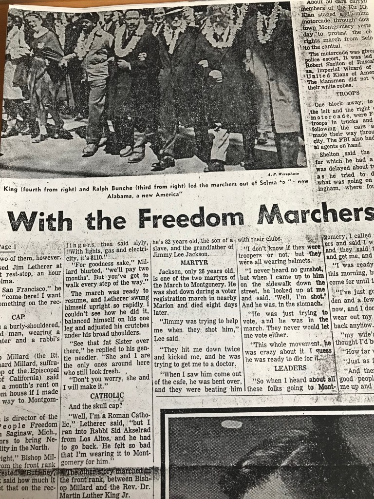 My father, then 37 years old, walked the Selma-to-Montgomery route with King and thousands of 1965 marchers, interviewing blacks, whites, locals, out-of-towners, cops and clergy along the way. One headline, two days after the thousands of marchers reached Montgomery on March 25, was “A Search for Answers.”