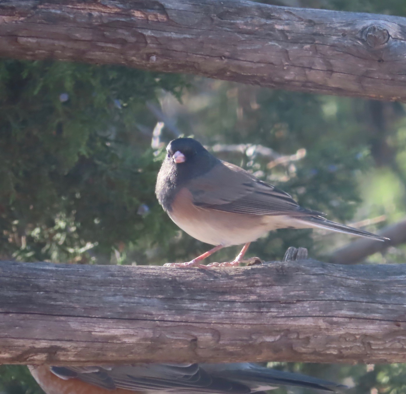 First mountain bluebird I’ve seen at my elevation this morning. Been seeing plenty of Western bluebirds with the turn of the season but this was the first visit of their taller, sleeker, more thoroughly blue male cousins. Yesterday and today, the dark-eyed juncos started showing up. And the robins have been coming in growing numbers for the water and last of the juniper berries.