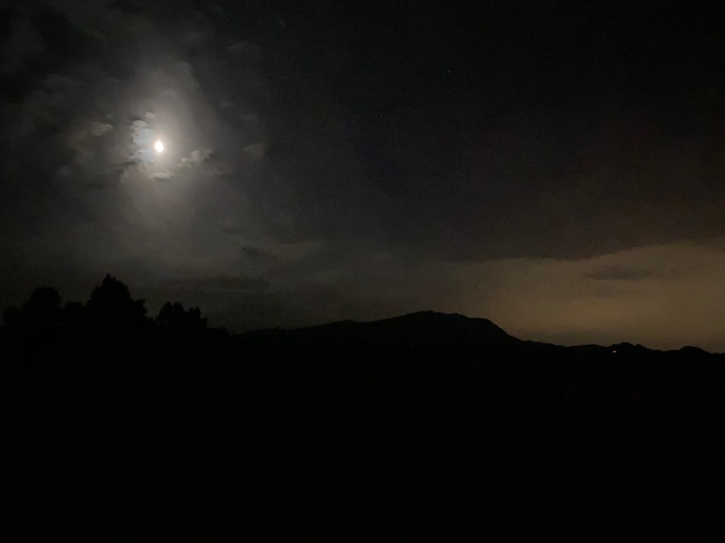 I don’t know whether it was the coyote ruckus and Cowboy barking or the smell of rain that got me out of bed at 4:30 in the morning but we were out observing. Not a drop fell here north of the Sandias that I could tell but the smell of rain to the south and east was unmistakable. I felt foolish outside in my longjohns but then knew that prying myself out of bed was worth it for that smell alone. While I drank coffee and watched birds later in the morning, my sister in Montana sent me maps of Western drought. Santa Fe National Forest tweeted that because of weather conditions it was putting off a prescribed burn in Pacheco Canyon, below the Santa Fe ski basin, where smoke always sets off alarms.