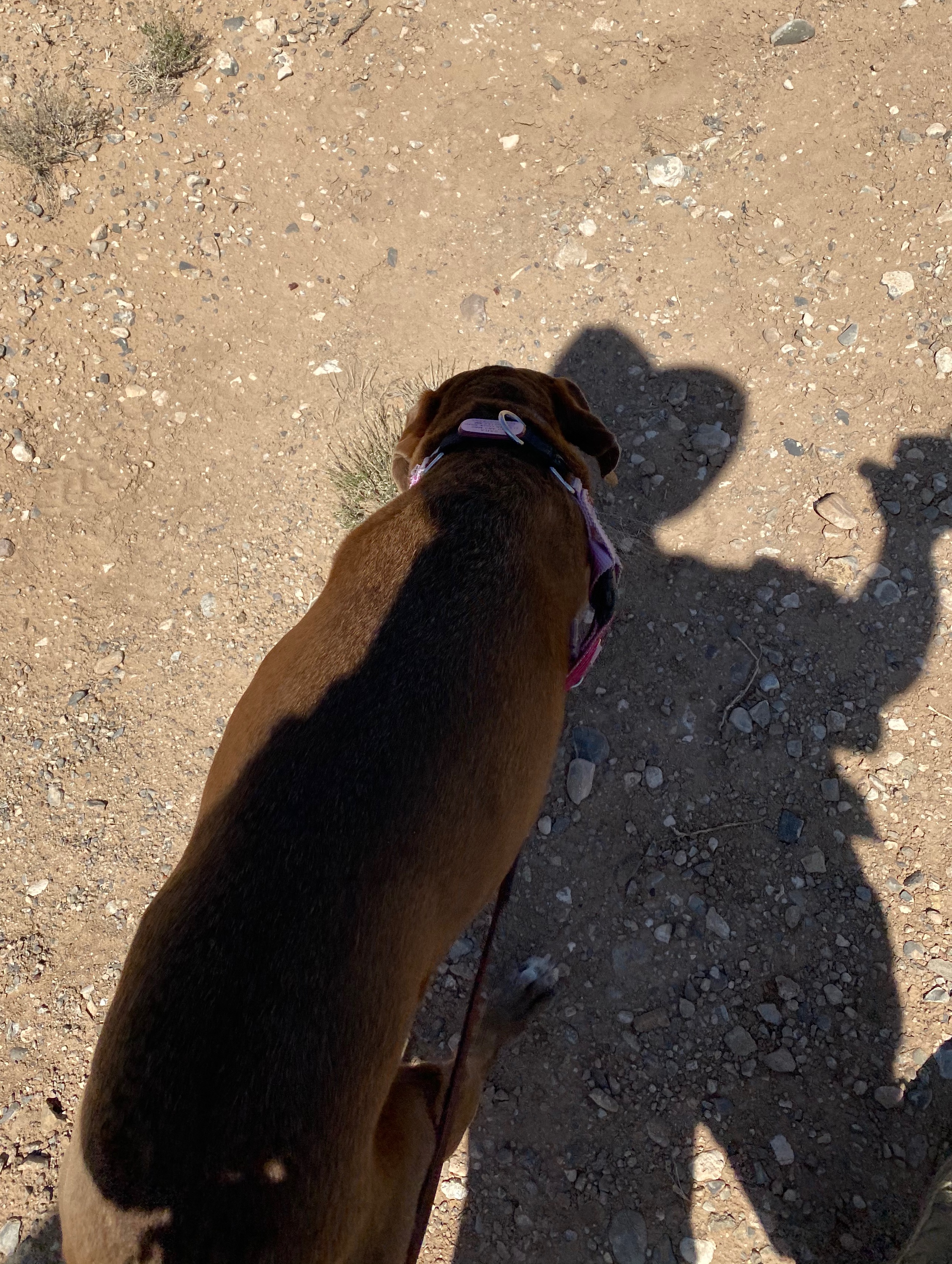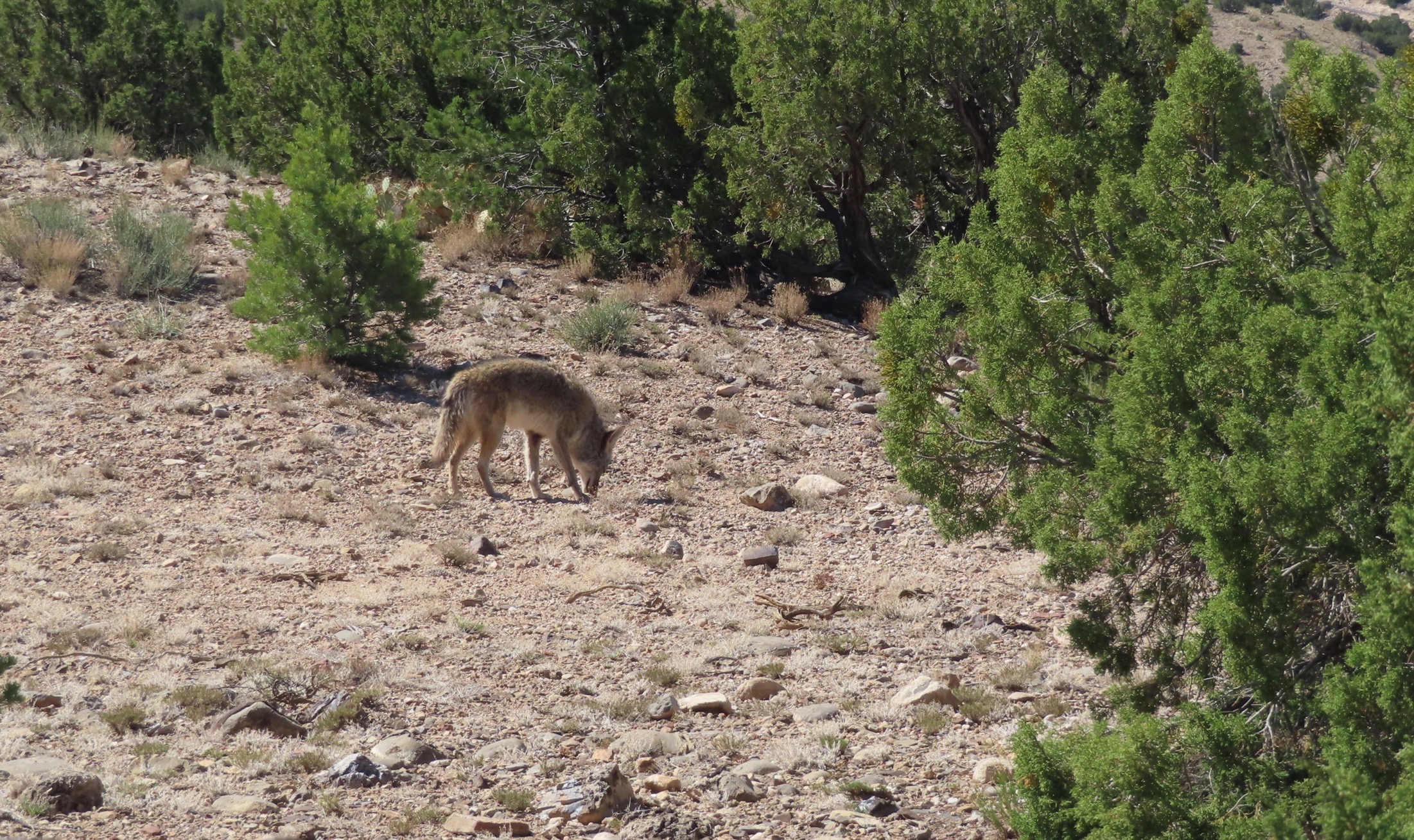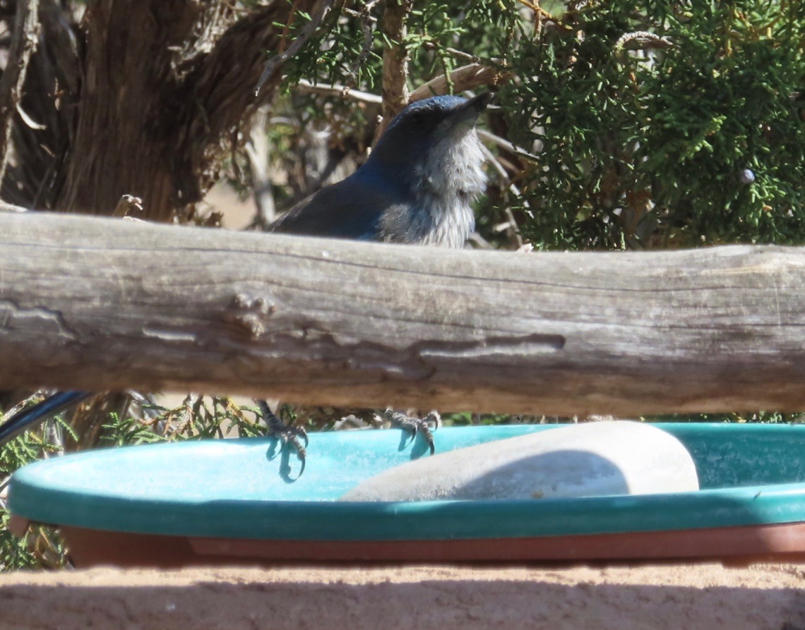 Seems like slim pickings for coyotes. I keep water out for scrub jays and others. Smart dogs like Sara shade up wherever they can. Two creeks used to run here. Now neighbors keep a plastic pool for Cowboy.