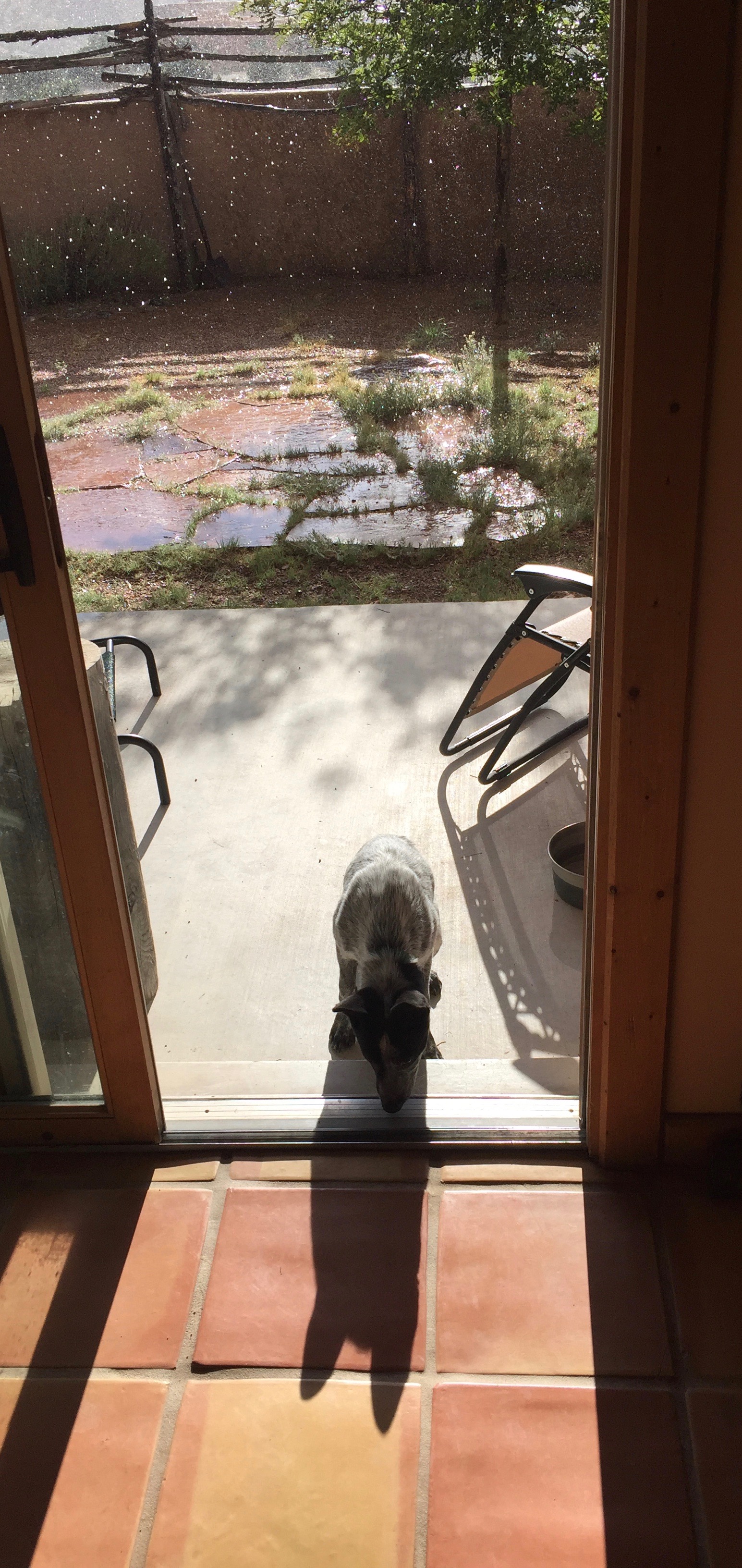 Cowboy apparently was born with a bossy side, though he was a very sick guy when he arrived here five years ago. But he had a full bag of tricks even as a pup. This is the move he pulled three days into foster care, watching what was maybe his first rain storm after spending many weeks at an animal hospital with a tick-inflicted disease called erlichiosis. I decided he could stay.
