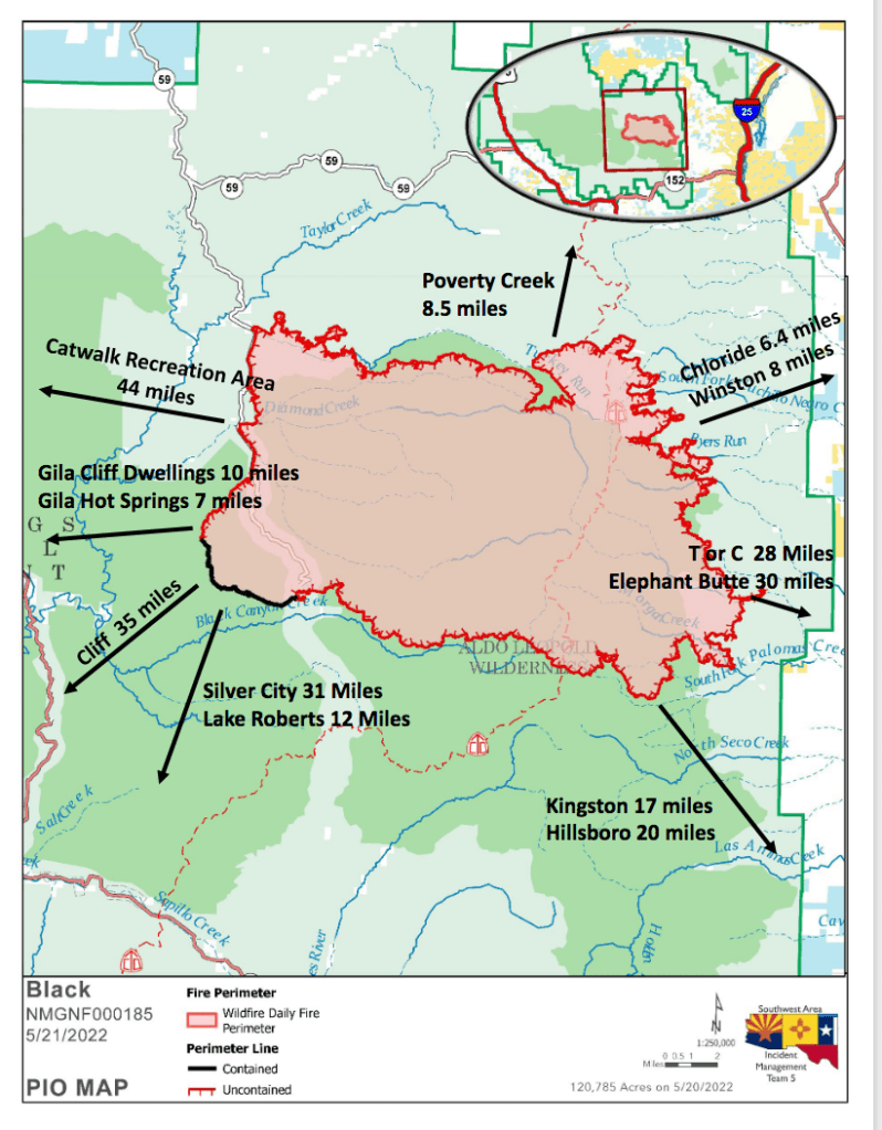 Meanwhile, I shouldn’t ignore the fast-growing Black Fire in the southwestern part of the state, already over 120,000 acres. Here is a link to an early 05/21 briefing: https://nmfireinfo.com/2022/05/21/black-fire-daily-update-may-21-2022/ And evacuations as of 3 p.m. Saturday: https://nmfireinfo.com/2022/05/21/evacuations-on-the-black-fire-expand-3-p-m-may-21-2022/