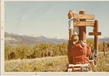 But on to happier things. Here you are with Pat and Mus sometime in the 1970s, walking down the Rito Valdez and drinking bourbon and rain water near Mora Flats. I think it was a trip with Gordon and Norma Peters and I’m sure Gordon took the picture. And there is good old Mus in the background. Pat is no doubt warming up her special backpacker’s green chile stew.