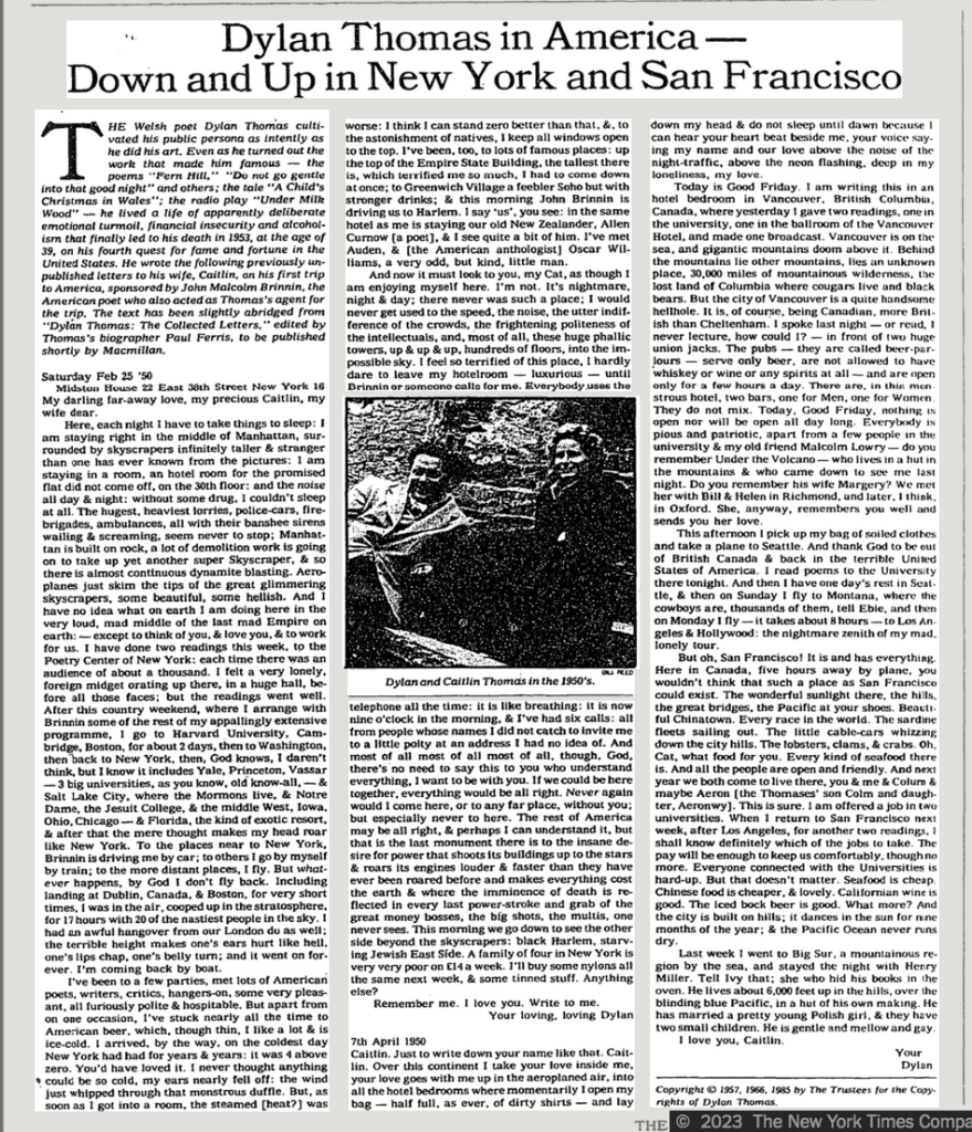 His descriptions call up a lot of buried personal images. My sister lives two blocks from the 92nd Street “Y” where Thomas premiered “Under Milkwood”