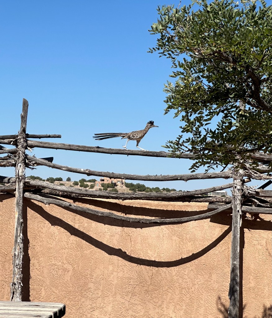 The official state bird might have been visiting this morning just for water but the mission also could have been lizards. He seemed annoyed that Cowboy and I were sitting nearby in the shade. It sounded like he blew us a raspberry. It had me recalling my half-sisters as kids saying “Beep it” when they wanted someone to move.