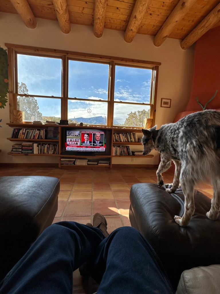 High court morning JR no comments February 8, 2024 Cowboy2 and I listening to Supreme Court arguments in Trump ballot case, Feb. 8, 2024. Share this: Click to share on Facebook (Opens in new window) Facebook Click to share on X (Opens in new window) X Click to email a link to a friend (Opens in new window) Email Click to print (Opens in new window) Print Like Loading... Related