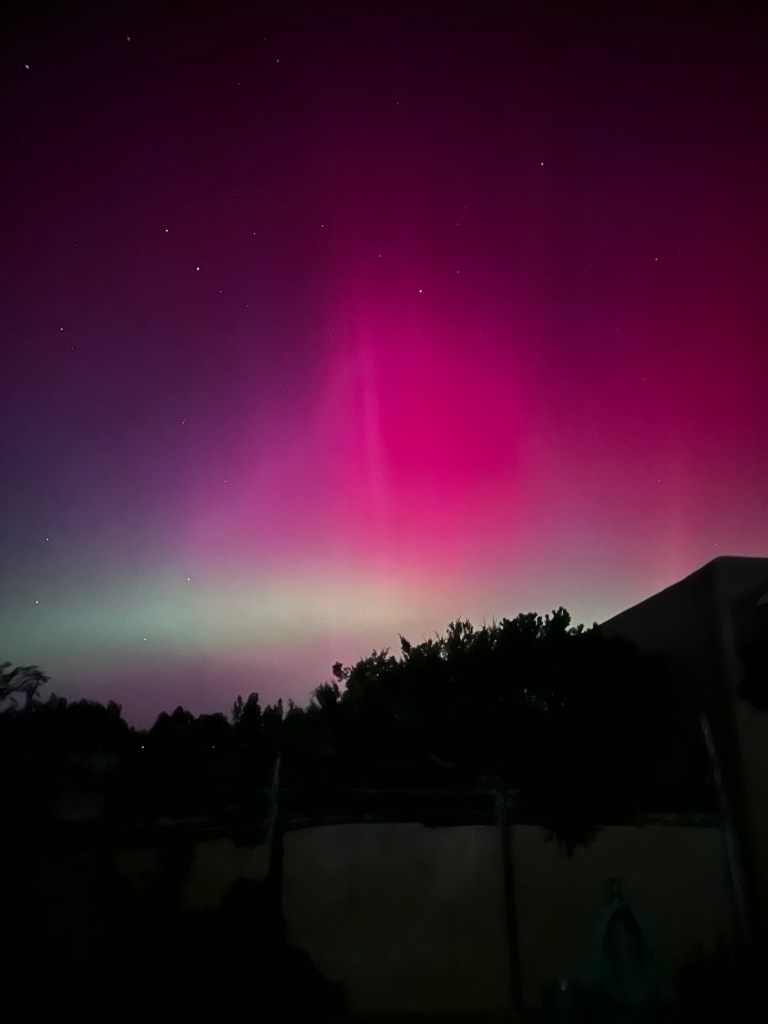 Aurora Borealis from home, Oct. 10, 2023. iPhone on night mode, which I think is longer exposure. This is not what I could see with my own eyes. I could detect some color with my eyes but it was much fainter, almost indiscernible.