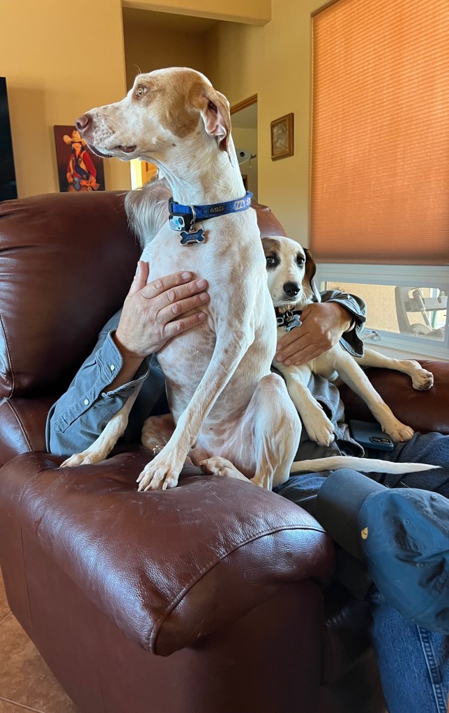 Also at the neighbors: Cowboy2 after the season’s first thunder rumble; Izzy and Molly just normal. .