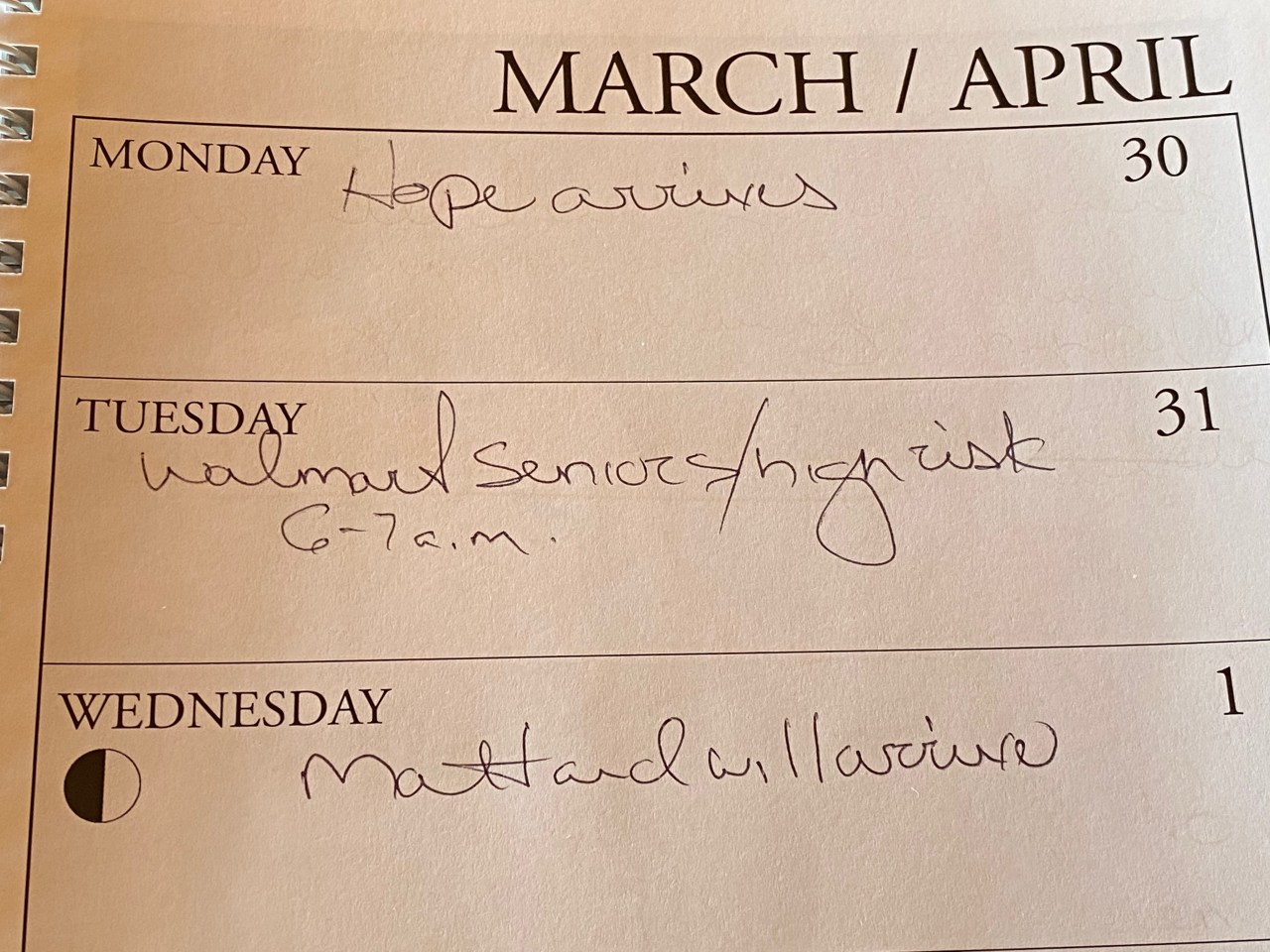 After making a coronavirus-related shopping note on my calendar for March 31, I looked down again at what I had entered a month earlier. “Hope arrives,” March 30. “Matt and Will arrive,” April 1. This was going to be a fun time, with a sister, brother-in-law and nephew coming from Montana for a spring break. …