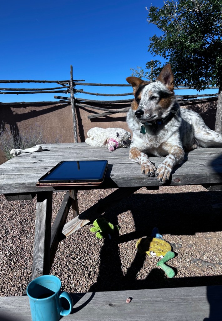 I can see that my morning writing time is about up … And I forgot that December 6 was his 1-year anniversary here and his guess-work third birthday. We’re goin’ for a walk.