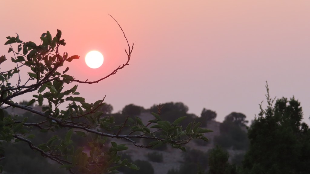 Here is another smoke-tinged sunset, seen from Placitas, New Mexico, on Sunday, July 11, 2021. Massive plumes of wildfire smoke across western states are common these days — one of the consequences of climate change, I am convinced. This smoke in New Mexico tonight apparently is from fires in northern California, Oregon, Idaho and Nevada. My little Canon Powershot couldn’t quite capture the intensity — or the eeriness — of the colors tonight. I thought it was an ugly view.