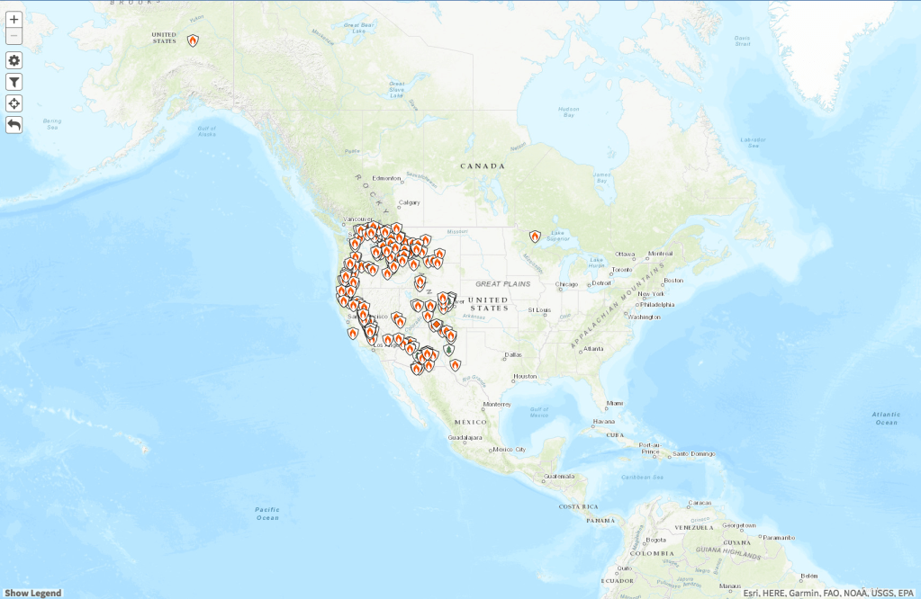 Fire map, August 8, 2021, morning. National Interagency Fire Center@NIFC_Fire·#NationalFireNews Fire activity in 15 states. Currently, 107 large fires or complexes have burned 2,272,800 acres. Near critical conditions w/ wind gusts up to 45 mph reported over north central MT, & up to 30 mph in E OR. Nearly 24,000 personnel & 30 T1 and T2 IMTs #FireYear2021