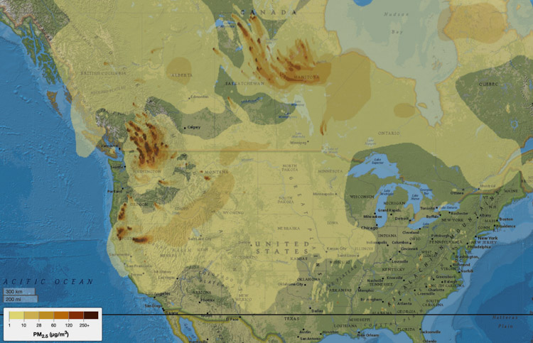 Smoke plume (shades of gray) descending south into New Mexico, morning, August 8, 2021.