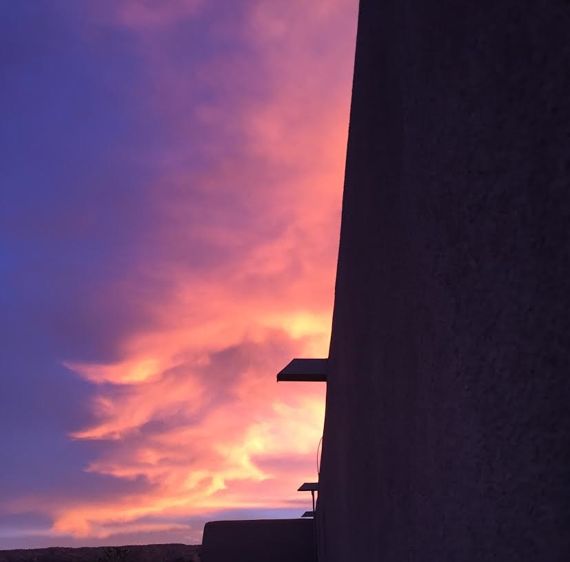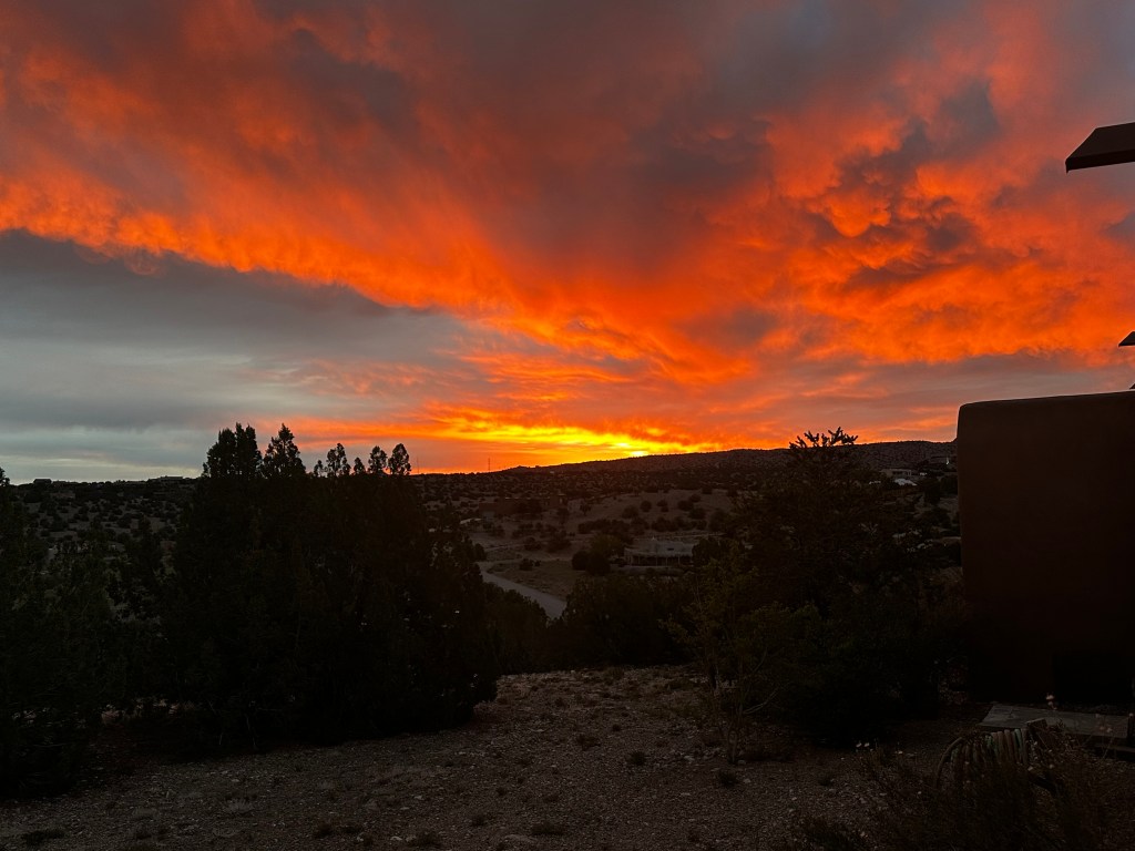 Sunrise often wakes me, sometimes before Cowboy 2. I semi-lept out of bed with my iPhone to capture this morning’s debut. My gentle pup moved into my still-warm place.