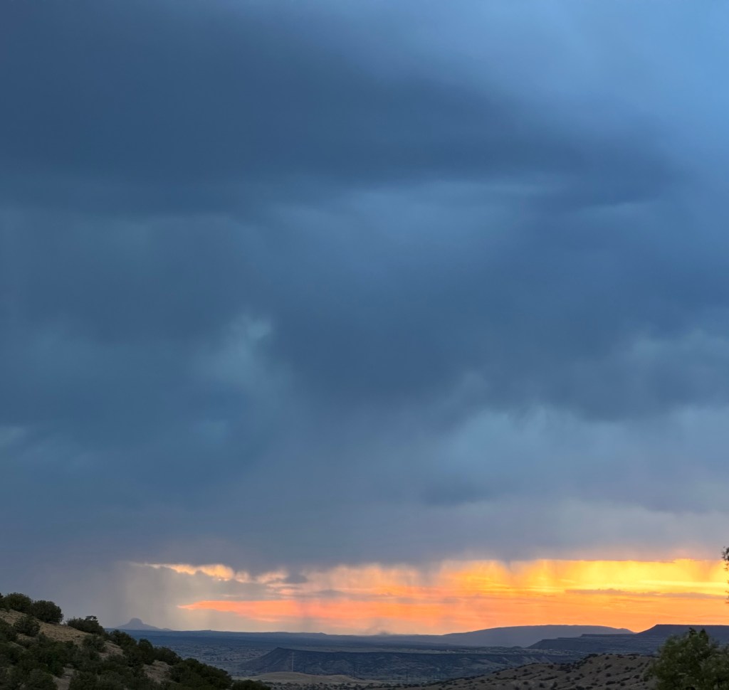 Walking rain, or what the weather wonks call virga, brushed the Sandias last night but left only a few drops of water. I headed out on my evening stroll after watching Gov. Michelle Lujan Grisham announce the first easing of coronavirus rules. I felt as wary about the coronavirus developments as I am ordinarily about …